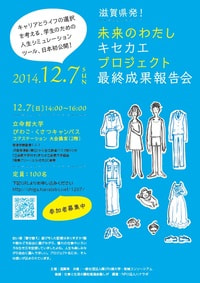 就職支援事業では、滋賀県男女共同参画課との共催により、学生のみなさんが、自らのキャリアとライフの選択を考える、学生による学生のためのツールを開発し、発信する『滋賀県発!未来のわたしキセカエプロジェクト』を8月からスタートしました。