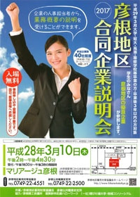 「彦根地区合同企業説明会」は、彦根地区に事業所を持つ魅力的な企業の人事担当者から、業務概要についての説明を受けることができます。彦根で働いてみたいという方、是非会場までお越し下さい!