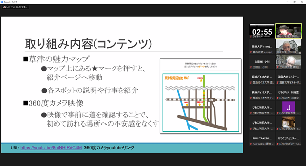 昨年度と同様に、新型コロナウイルス感染症拡大防止に鑑み、ディスカッション等により交流を深める地域の皆様との交流会は中止とし、大学地域連携事業の中間報告会(活動報告)のみを、オンラインにより実施することになりました。