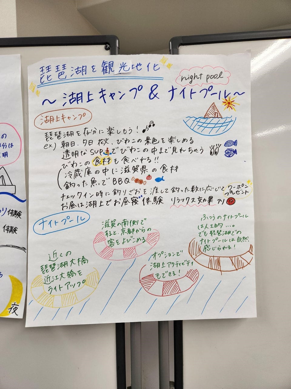 最後のグループのテーマは「びわ湖を観光地化 ~湖上キャンプ&ナイトプール~」