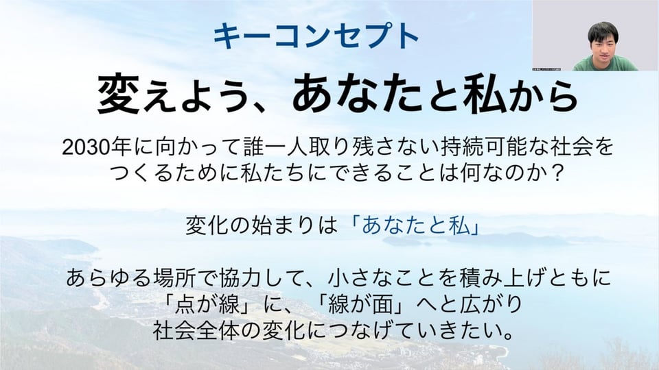 講演の締めくくりでは、「変化の始まりは『あなたと私』から」であると伝えた。小さな実践が積み重なることで、やがて社会全体の大きな変化へと広がっていく。MLGsは、琵琶湖という身近な場所から、誰一人取り残さない持続可能な社会を目指す、新しい学びと行動のモデルを提示している。
