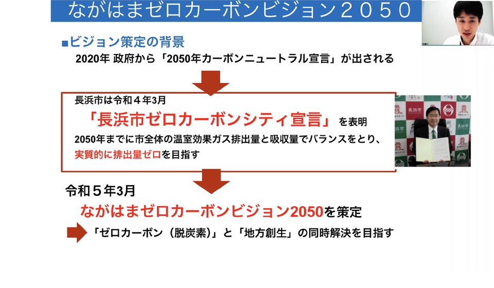 また、私と同じくMLGs案内人である桐畑孝佑さん(長浜市環境保全課/滋賀県庁から出向)からフィールドワーク先である長浜市についての紹介をいただきました。