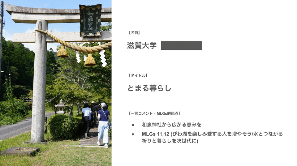 報告は以上になりますが、3日間の集中されたMLGsワークショップを参加者の皆さんに体験していただきました。今後、滋賀県の貴重な観光資源や自然資源に触れていただきたいと思っています。