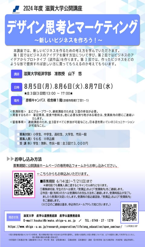 【参加者募集】滋賀大学・公開講座「デザイン思考とマーケティング」(終了)