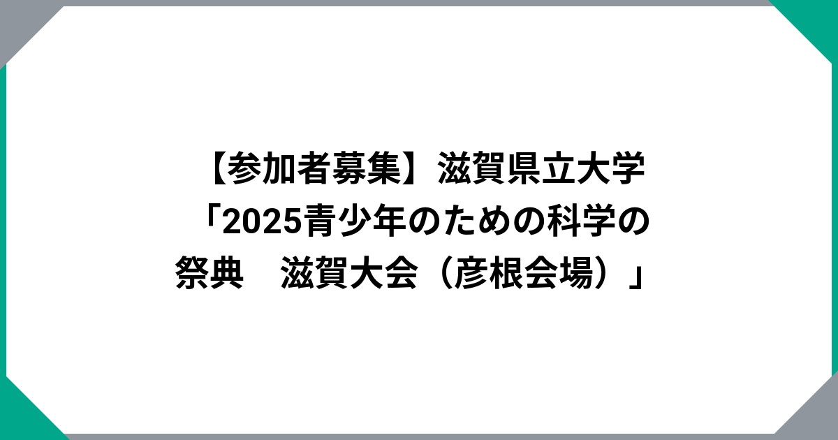 【参加者募集】滋賀県立大学「2025青少年のための科学の祭典 滋賀大会(彦根会場)」