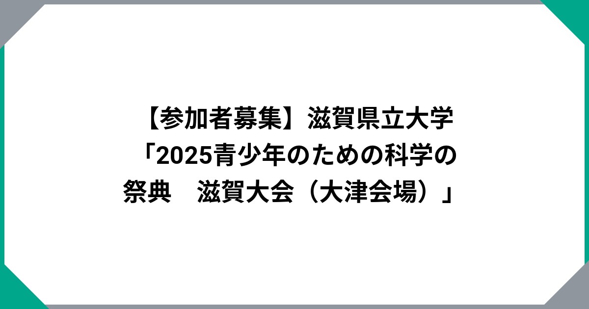 【参加者募集】滋賀県立大学「2025青少年のための科学の祭典 滋賀大会(大津会場)」