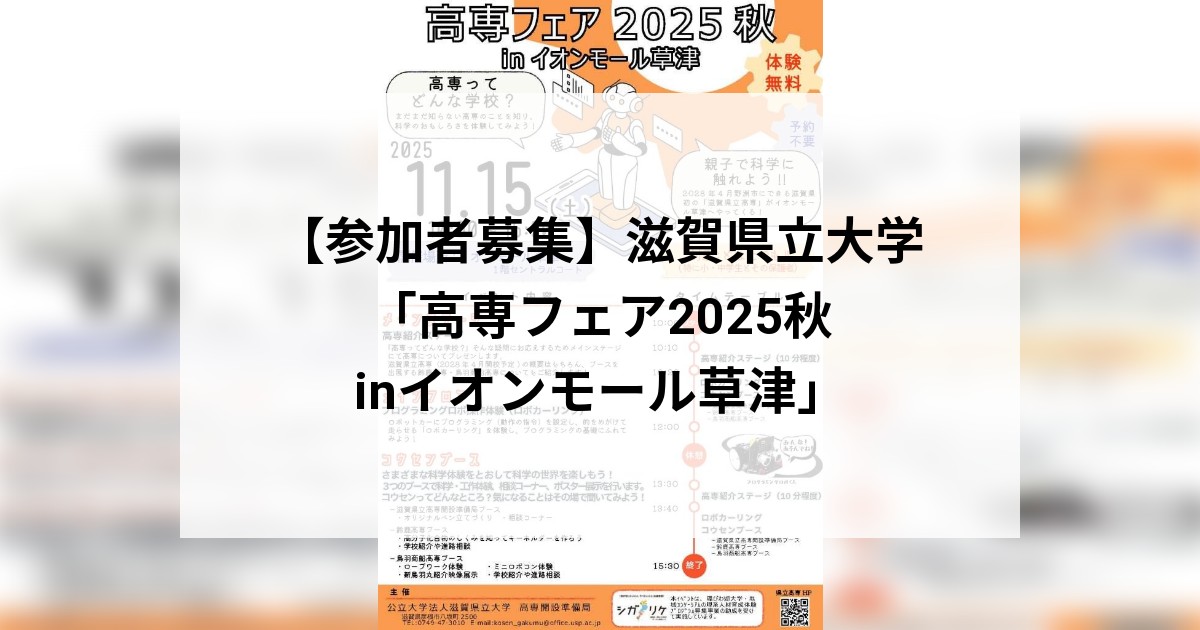 【参加者募集】滋賀県立大学「高専フェア2025秋inイオンモール草津」