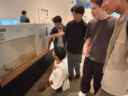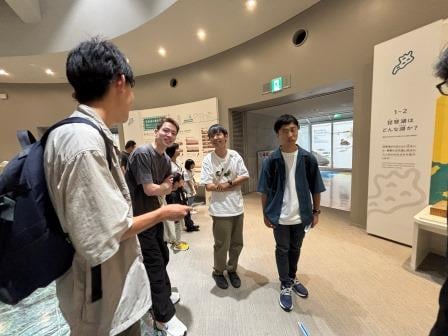 滋賀県が誇る琵琶湖。その琵琶湖についての展示が豊富である琵琶湖博物館にて交流会を実施しました。4大学の5団体から12名が参加し、昆虫や魚類など自分が好きな分野や研究してみたいことについて発表するアイスブレイクを行った後、展示を見ながらそれぞれの活動や興味についてディスカッションを行いました。