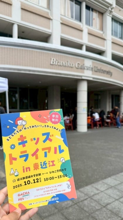 東近江市にあるびわこ学院大学をフィールドに、学校やお家ではできない職業体験やおもしろ科学実験、身体をめいっぱい動かす運動など、子どもたちの『やってみたい』を詰め込んだイベントです。当日は体験だけでなく、大学前駅では美味しいフードマルシェも開催します。1日めいっぱい楽しめるイベントです。