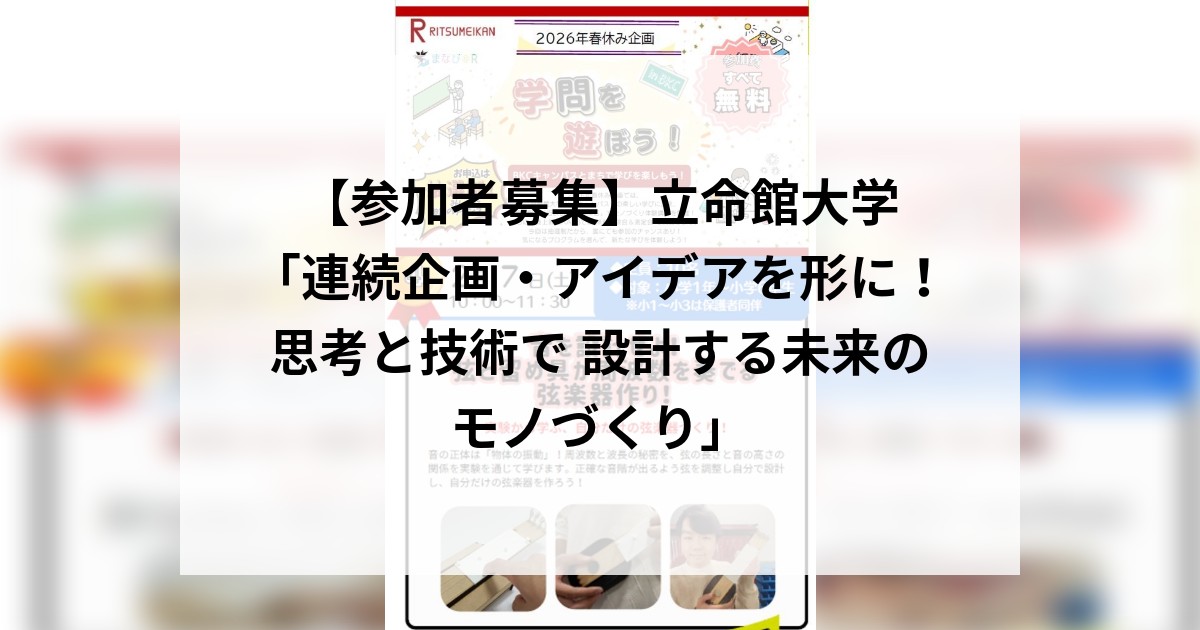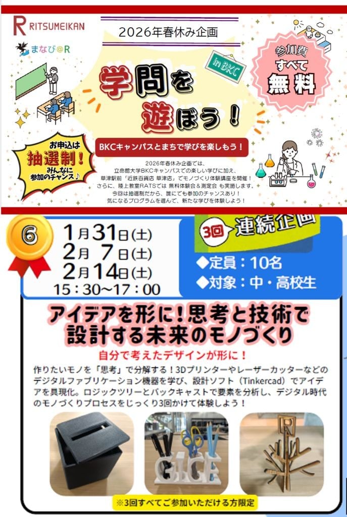 【参加者募集】立命館大学「連続企画・アイデアを形に!思考と技術で 設計する未来のモノづくり」