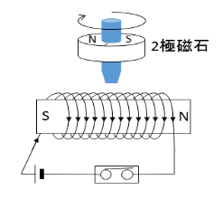 (2)回りつづけるコマは、コイルが固定され、磁石が回る