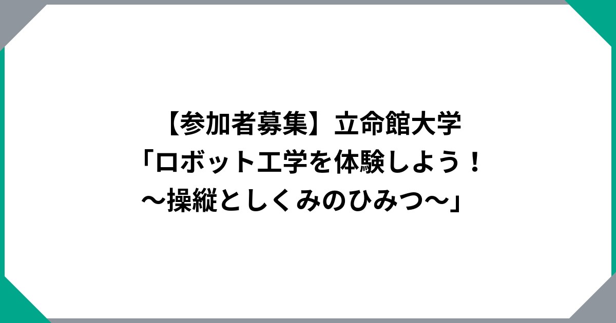 【参加者募集】立命館大学「ロボット工学を体験しよう!~操縦としくみのひみつ~」